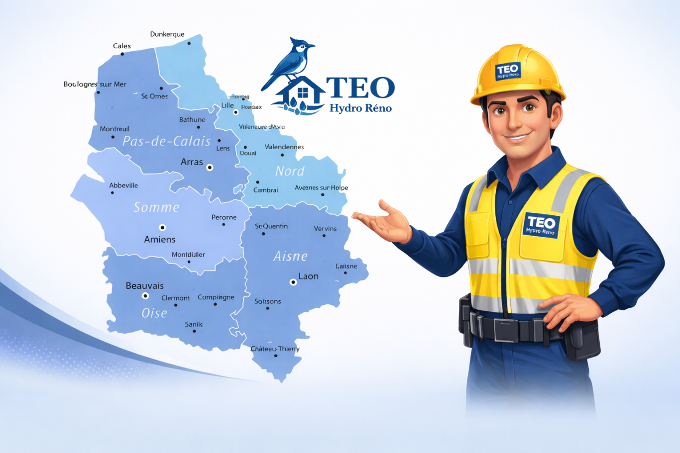 TEO Hydro Reno intervient principalement dans les Hauts-de-France pour les travaux liés à l’humidité, au drainage, aux pathologies du bâti et à la rénovation après sinistre.