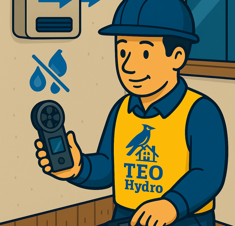 La VMC (Ventilation Mécanique Contrôlée) extrait l’air humide pour le remplacer par de l’air neuf. La VMI (Ventilation Mécanique par Insufflation) insuffle de l’air filtré et sec dans la maison, créant une légère surpression qui chasse l’humidité. TEO Hydro vous conseillent la solution la plus adaptée selon votre habitat et votre budget.