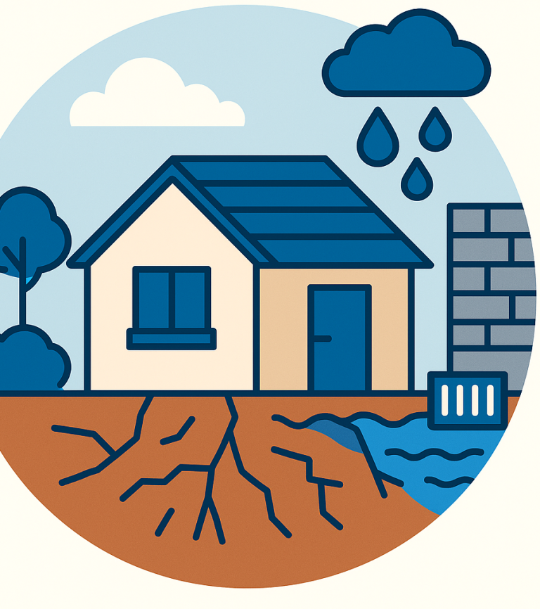 - Sols argileux (zones RGA) ou terrains imperméables favorisant la stagnation