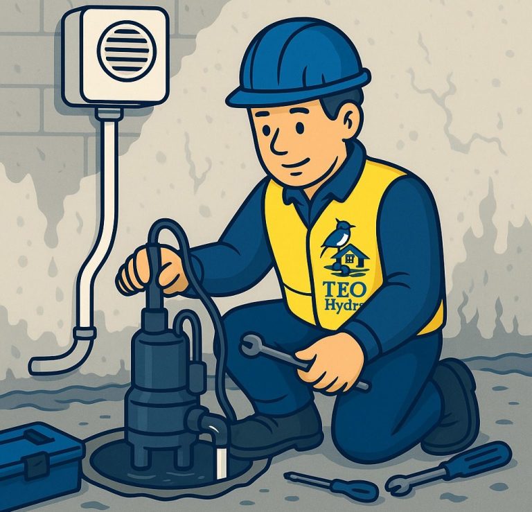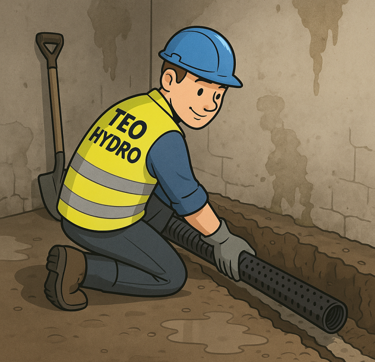 TEO Hydro propose des solutions fiables : drainage, station de relevage, VMI cave et entretien spécialisé.
