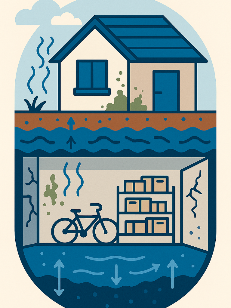 Les remontées de nappe phréatique sont une cause fréquente d’humidité et d’inondations dans les caves et garages.