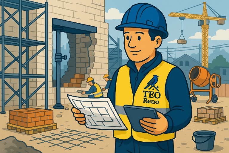 Chez TEO Réno, chaque chantier de gros œuvre ou de rénovation structurelle est conduit avec méthode, rigueur et exigence technique. Qu’il s’agisse d’un sinistre, d’une transformation lourde ou d’une extension, notre organisation s’appuie